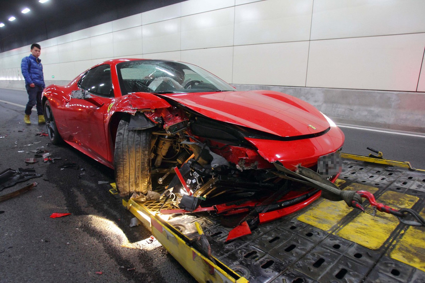 12月9日,浙江省杭州市,一辆全新的法拉利跑车在一处隧道内由于失控接连撞上了4辆小轿车,法拉利跑车受损严重。这辆法拉利跑车一侧门上印有“458Spider”,上网比对,这是一辆2013款的法拉利458Spider跑车,官方售价443万元起,拥有4.5升的排量,百公里加速只要3秒。 许康平/东方IC