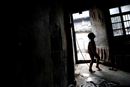 - 11月27日,浙江省嵊州市,一间阴暗潮湿的土砖房间,弥漫着刺鼻的霉味,“铁链”男孩右脚上缠着近2米长的铁链,铁链的另一端拴在离地2米墙壁铁钉上,他光着下身,赤着脚,在地上跳来蹦去。男孩1岁时从床上摔下后,无钱医治,脑袋有些不正常,到四五岁时,随时会打人,弄坏村里人东西,最初是用绳子绑住脚,但经常被他咬断,无奈之下,只好用铁链锁住。 净土/东方IC