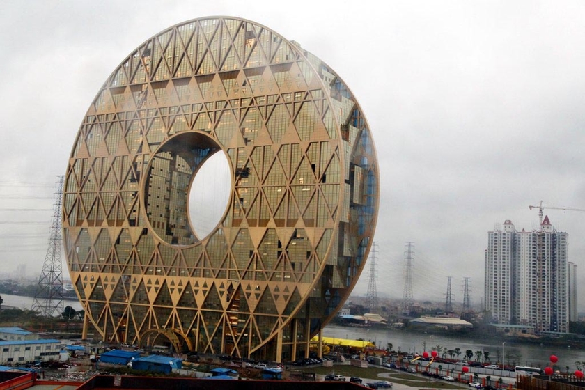 12月16日,广州珠江边的土豪金“圆大厦”正式落成。 李向新/CFP