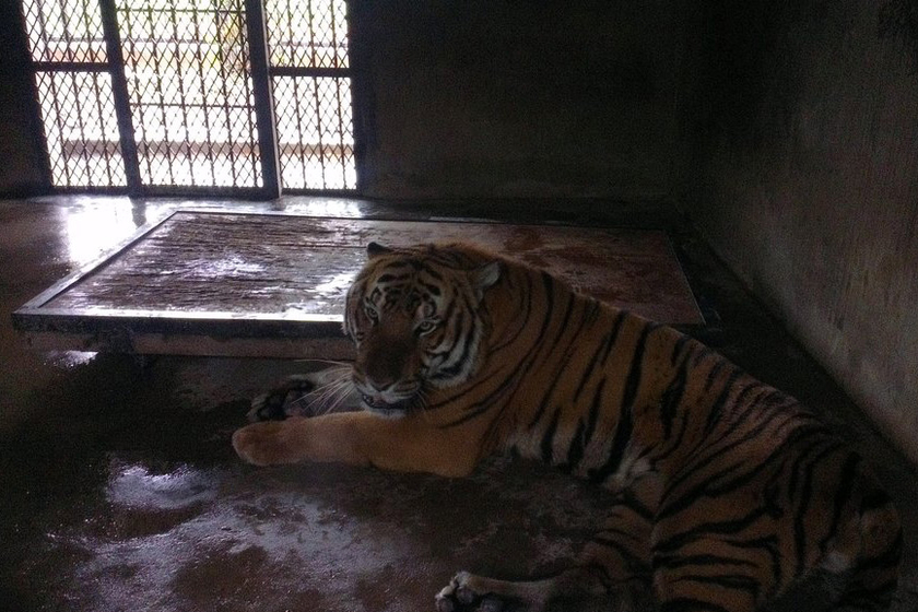 12月17日,上海动物园繁殖场一饲养员在打扫虎笼时不幸被华南虎咬死。据了解,肇事老虎今年9岁,正直壮年,在上海动物园出生,没有野化的任务,也并非野外饲养。目前,老虎已经被关在虎舍中。事故原因正在进一步调查中。图为肇事老虎。 CFP