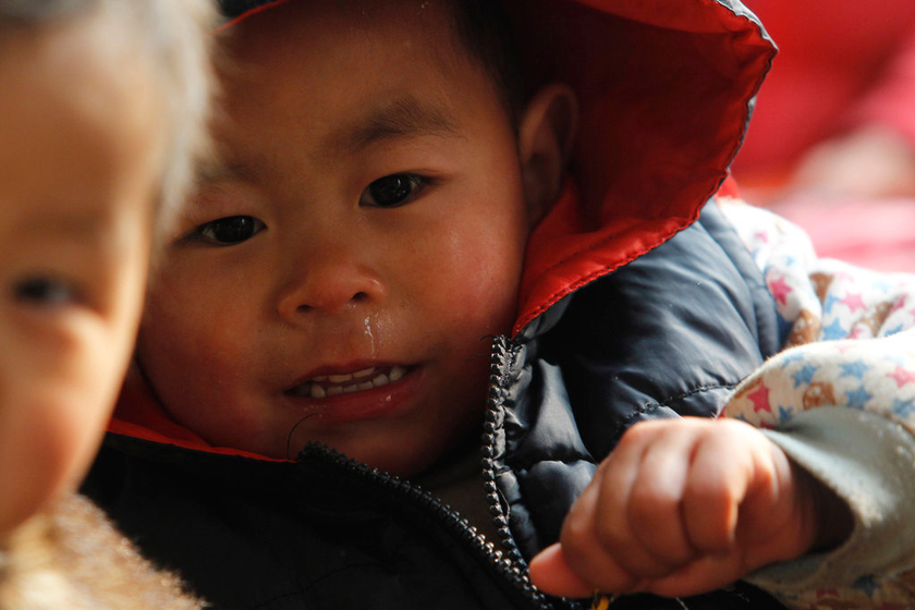 12月24日,北京昌平区东小口镇芦家村打工子弟学校经纬学校,学生冷到搓手。 谭青/CFP