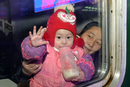 1月16日,北京铁路局春运首趟L603次旅客列车从北京站驶出,坐在车厢里的孩子透过窗户挥手道别。 大可/东方IC