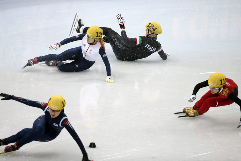 - 当地时间2月13日,索契冬奥会,短道速滑女子500米决赛摔声一片,李坚柔戏剧性地为中国摘下索契冬奥会首金。 BARBARA WALTON/CFP