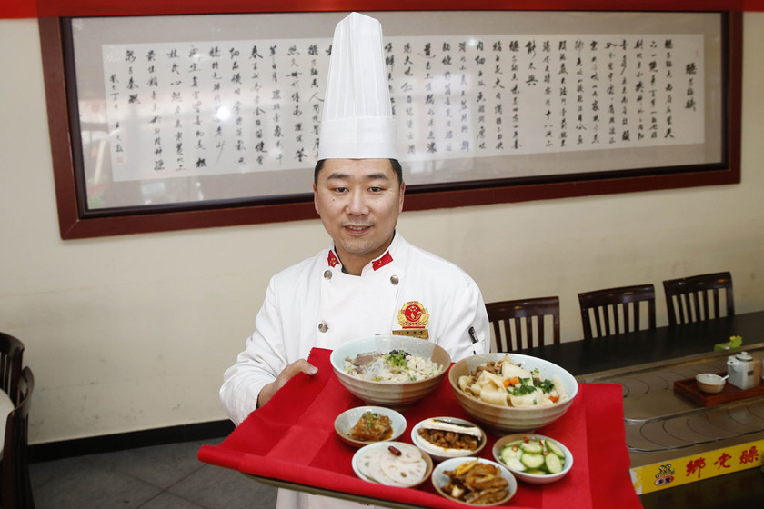 2月19日,西安昆明路一餐馆推出习近平请连战吃饭的套餐,四小份凉菜,肉夹馍、biang biang 面和羊肉泡馍。 陈团结/CFP
