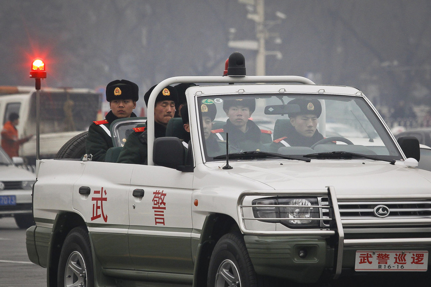 3月3日,武警驾驶敞篷警车在长安街上巡逻。 东方IC