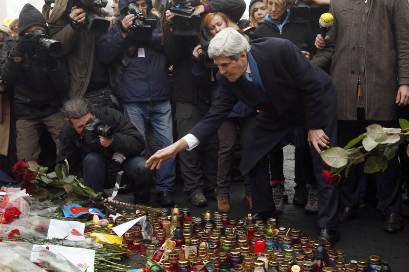 - 当地时间3月4日,乌克兰基辅,美国国务卿克里抵达独立广场,参观遇难示威者纪念坛。 Dzhavakhadze Zurab/东方IC