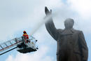 3月4日,辽宁省沈阳市,消防支队用消防车清洗中山广场上的毛主席雕像。 黄金崑/CFP