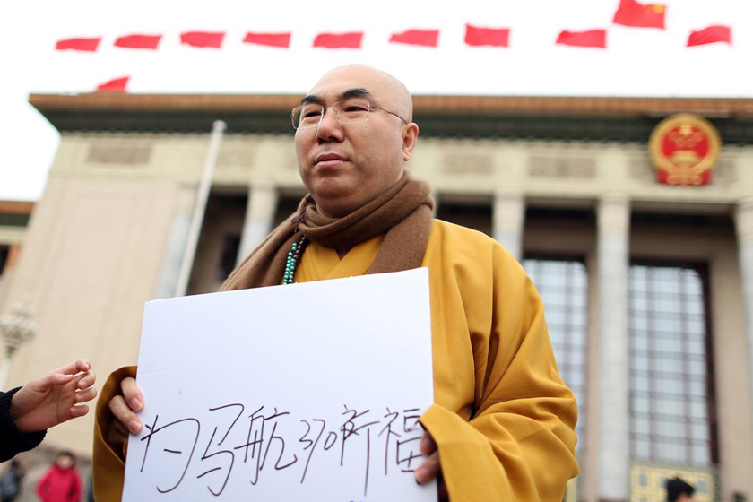 3月12日上午9时,全国政协十二届二次会议在人民大会堂举行闭幕会,政协委员为马航失联飞机祈福。 田贺/CFP
