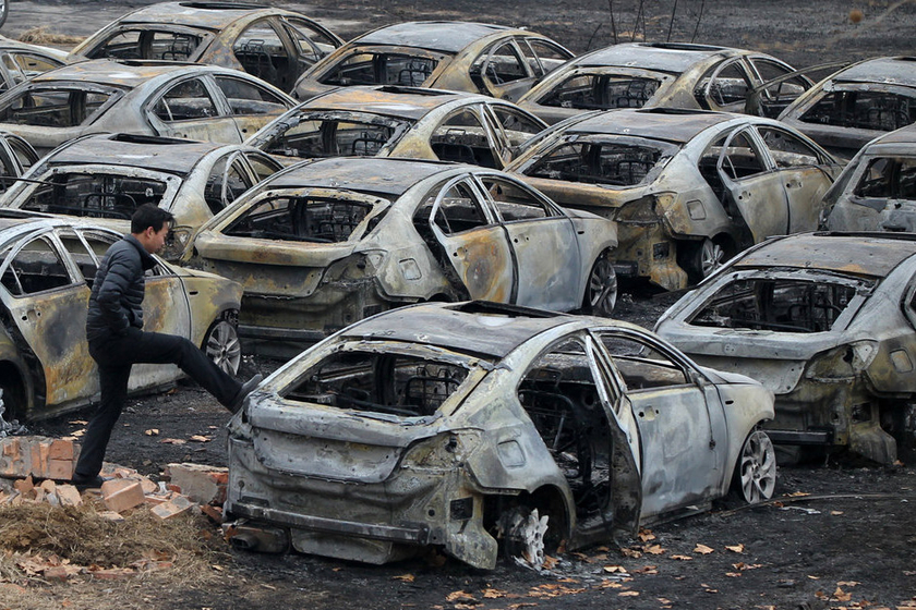3月12日,郑州,停车场烧毁的汽车。 毛毛/CFP