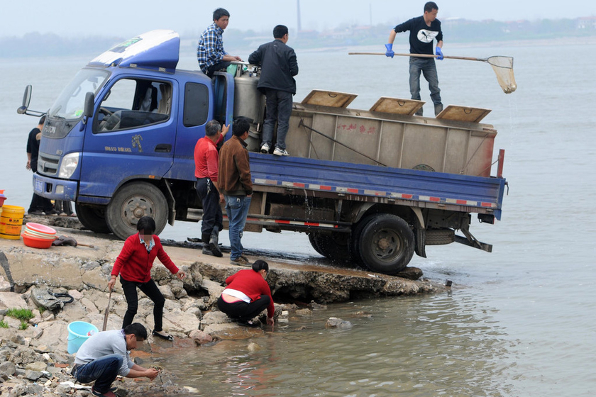 长江增殖放流 市民趁机摸鱼