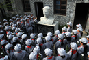 4月2日,山东省临沂市郯城县马头镇红军小学学生参观爱国主义教育基地——中共鲁南第一支部旧址。 房德华/CFP