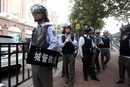 4月9日,广州白云区梓元岗至中医药大学附属医院地段,城管执法人员戴头盔、手持盾牌等装备,准备开始执法。 Dragon Z/东方IC
