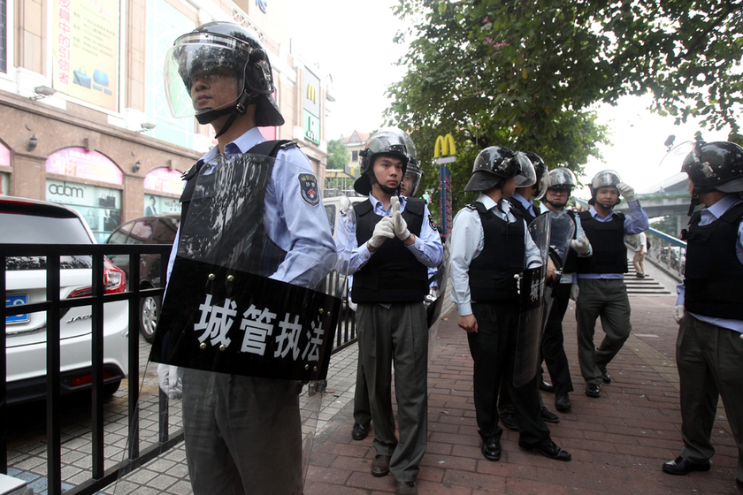 广州城管全副武装整治路边摊点