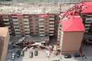 4月24日,黑龙江哈尔滨,松北团结村李家屯团结小区一栋楼房房盖被大风刮掉,停在楼下的近10辆车被砸受损。 小刚/CFP