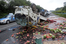 5月5日,海南东线高速公路定安县路段,一辆运输西瓜货车翻车。 萧风/CFP