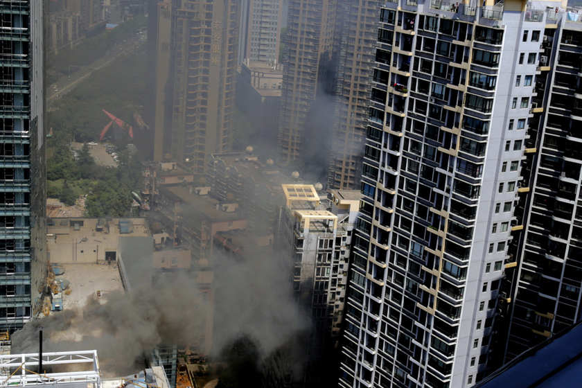 - 5月6日上午10时许,湖北省武汉市,武昌光谷转盘西侧珞瑜路一大楼着火,浓烟滚滚,起火点为一个在建楼盘的8楼顶楼冷却塔。sty/东方IC
