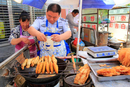 5月12日,河南省安阳市内黄县城管局工作人员在街头“练摊”,当日内黄县城管局开展“城管当一天商贩”换位体验活动。 刘肖坤/CFP