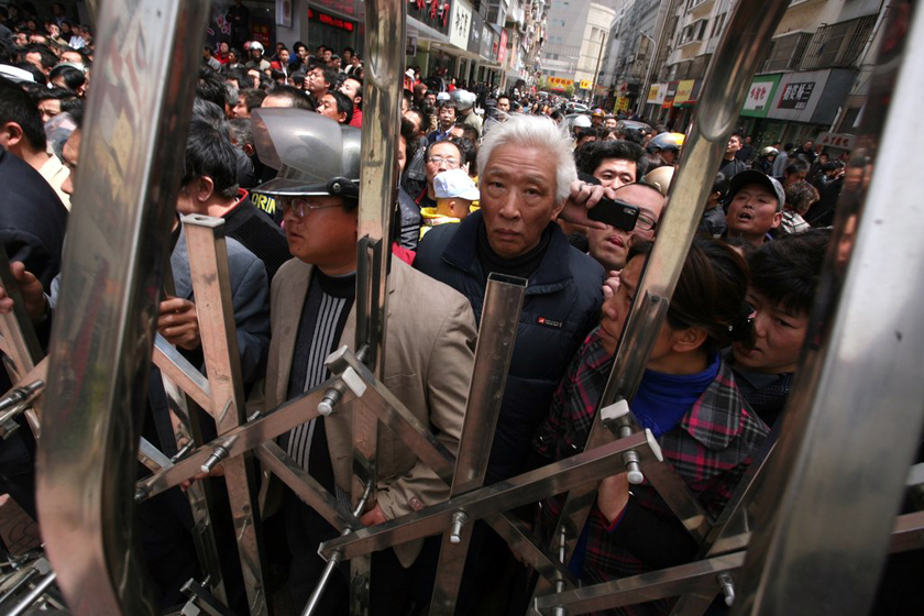 2010年4月29日上午,江苏省泰兴市泰兴镇中心幼儿园,持刀行凶事件发生后,许多学生家长聚集在校园门口。 CFP