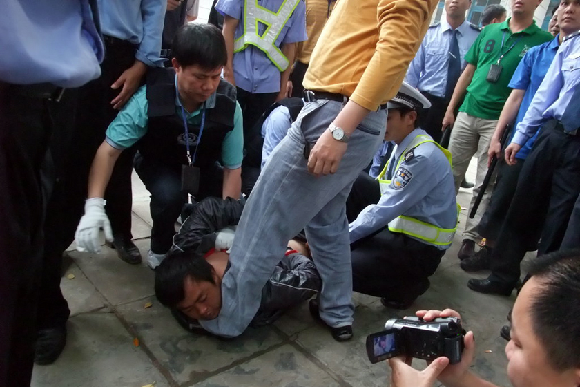 2010年4月28日15时左右,广东湛江雷州市,一名30多岁中年男子冲进雷城第一小学,持刀砍伤15名学生和1名男性美术教师。案发后约一小时,疑凶即被公安干警和武警消防官兵抓获。 CFP