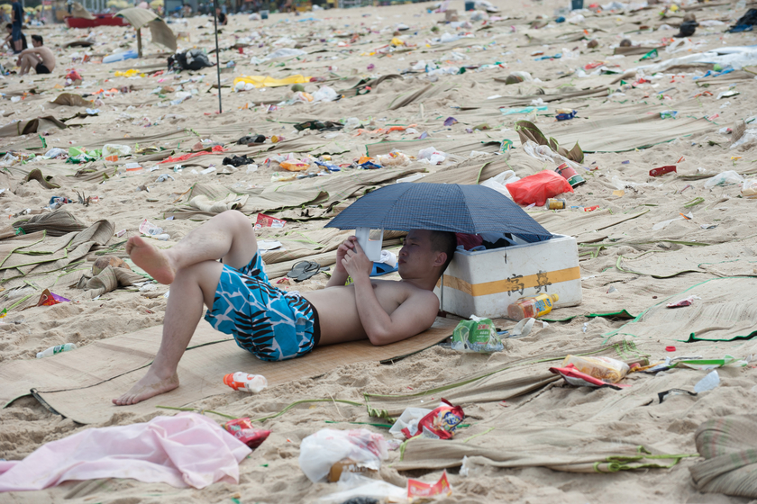 6月3日,深圳,大梅沙沙滩上到处是假期游客走后留下的各种生活垃圾。据深圳大梅沙海滨公园管理处统计,5月30日、6月1日和2日,公园分别迎来9.6万、19.4万以及19万人次的客流量,最高峰在6月1日晚上,有4.8万人在沙滩上过夜。 东方IC