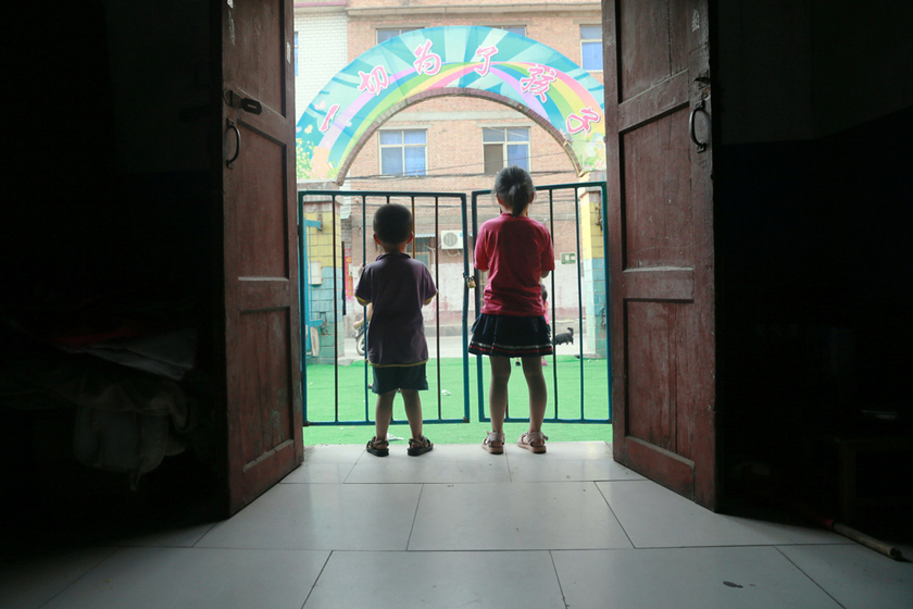 - 2014年6月9日,河南洛阳,放学了,每次门开,小姐弟就会跑过去看看父母有没有来接他们。 popcorn/东方IC