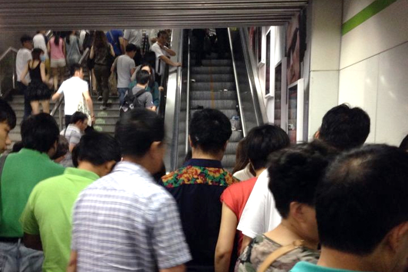 上海地铁自动扶梯逆行 10余人受伤