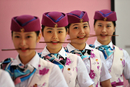 6月18日,重庆客运段动车组列车乘务员进行礼仪训练。重庆客运段从全段普车列车长、动车列车员中选取35名优秀人才进行动车列车长的专业培训,还对169名筛选的“准动姐”开展为期24天的动车乘务员服务礼仪、双语播音等业务知识培训。 曹宁/东方IC