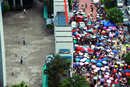 7月8日,广东省汕头市一民办中学举办“小升初”入学考试。由于该校师资实力较强,吸引了7000多名学生前来争夺1000多个新生学位。数千名家长顶着烈日在校门外等候。 HM/CFP