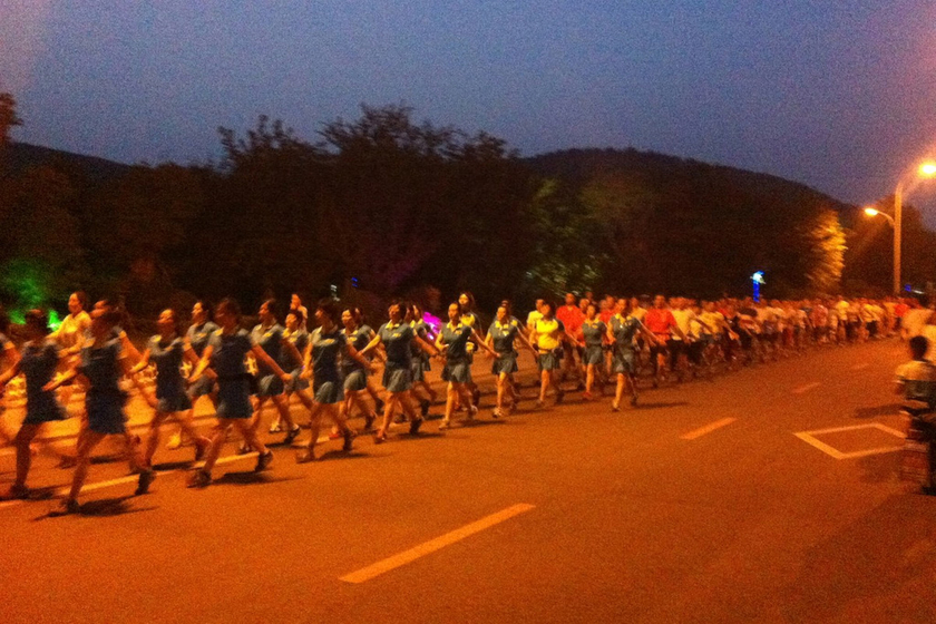 7月9日晚,江苏徐州,参与暴走的人整齐划一行走。 刘清香/东方IC