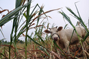 - 2014年8月5日,河南遂平县张台村,黄牛正在玉米田里吃绝收的玉米。 青木/东方IC