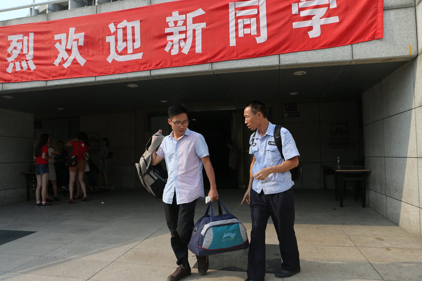 8月27日,北京,32岁的吴善柳在父亲的陪同下到清华大学报到入学,他是清华今年年龄最大的本科新生。吴善柳,广西浦北县北通镇人,从2000年开始参加高考,2001年复读考上北京交通大学,读了一年多辍学。吴从2007年开启连续复读之旅,2011年放弃了北大医学部的录取。过去10年,他考上但弃读的高校有北京大学、南京大学、同济大学、北京交通大学、北京师范大学、中山大学等。2014年吴善柳参加高考,夺取了钦州市理科状元,被清华大学录取。 王哼/CFP