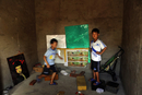 新学期开始,却有一部分学生因为学校变迁不能像其他孩子一样正常坐进学堂开课。近日,昆明市育林民工子弟学校,因房屋租赁到期被堵校门;郑州农民工子弟小学开学前被拆;郑州二七区德全小学停办等民工子弟学校问题频繁出现。城镇化的快速发展,掀起了农民工进城的热潮,解决民工子女受教育问题刻不容缓,民工子弟学校在承担农民工儿童义务教育的同时,受到了各种不公平待遇。图为2010年7月31日,北京唐家岭新城周转房建设工地旁,被拆的打工子弟学校里玩耍的小孩。 田贺/CFP (编辑:顾明月)