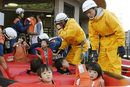 - 当地时间2014年10月6日,强台风“巴蓬”在日本静冈县滨松市附近登陆,目前已造成5人死亡,多人受伤。图为神奈川县平冢,一托儿所遭水淹,消防员利用橡皮艇救援儿童。 东方IC