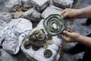 - 2014年10月21日,广东省佛山市林业局销毁了一批重1580公斤的走私野生灰鼠蛇干,这些蛇干是近期在高明码头截获的,由海关移交佛山市林业局销毁。经送华南濒危动物研究所鉴定,这些蛇干为灰鼠蛇干。灰鼠蛇是无毒蛇,不属于保护动物,蛇干可用来入药或煲汤。市林业局相关负责人称,这些野生动物身上往往带有多种细菌,野生动物带病和染病率较家禽要高得多。图为工作人员展示蛇干。 CFP