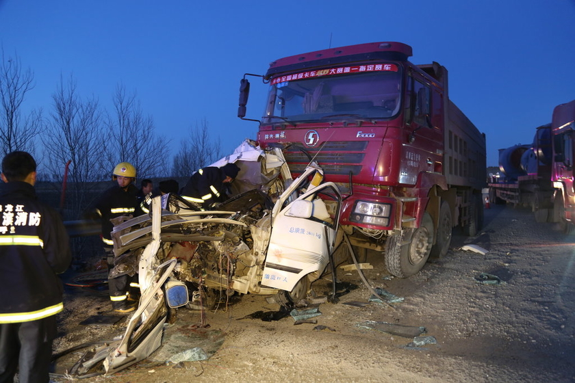 2014年10月27日凌晨4时20分,黑龙江省哈尔滨市,在哈肇公路76公里处(哈尔滨市呼兰区方台镇路段)发生一起严重交通事故,一辆自卸翻斗车追尾一辆面包车,造成面包车内6人死亡、7人受伤。伤者已送往医院。 海军/CFP