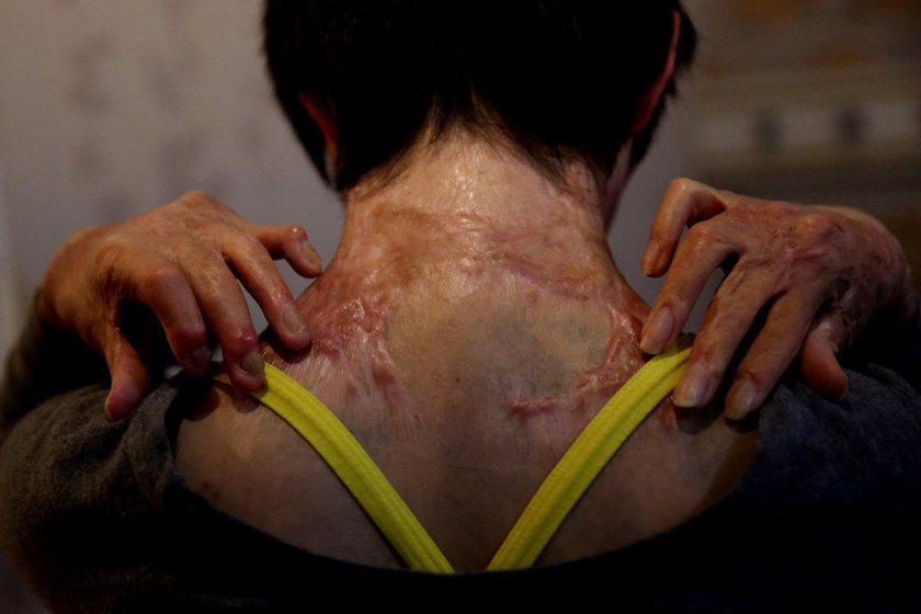 经过七天七夜的抢救,周岩虽然捡回一条命,但不得不面对全身30%面积的烧伤。 曾经那张长个痘痘都让她郁闷不已的脸颊布满疤痕,一只耳朵被完全烧掉。第一次看见这样的自己时, 周岩没有哭出声,只是不停地流泪。那之后,她特别害怕镜子。