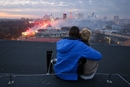 - 2014年11月11日,波兰首都华沙举行游行活动庆祝国家独立日,游行活动最终引发骚乱,一些示威者与警察发生激烈冲突。图为一对情侣坐在屋顶上观望游行引发的骚乱。 PAWEL SUPERNAK/东方IC