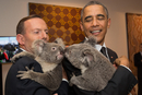 当地时间11月15日,二十国集团领导人第九次峰会在澳大利亚布里斯班举行,与会各国领导人怀抱澳大利亚的国宝考拉。图为美国总统奥巴马(右)与澳大利亚总理阿博特怀抱考拉。 东方IC