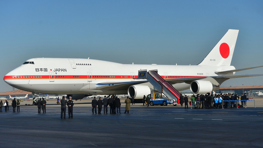 2014年11月10月,亚太经合组织第二十二次领导人非正式会议期间,日本首相安倍晋三乘坐的专机波音747-400停放在北京首都国际机场。专机在1992年购入,由航空自卫队旗下的航空支援集团特别航空输送队运营,平时停放于日本札幌市新千岁机场旁的千岁基地。 郭谦/东方IC