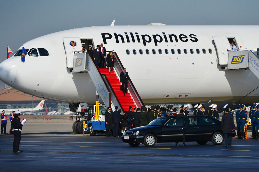 2014年11月10月,菲律宾总统阿基诺乘坐专机抵达北京首都国际机场,出席亚太经合组织第二十二次领导人非正式会议。阿基诺所乘专机是由菲律宾航空公司运营的空客A340。 郭谦/东方IC