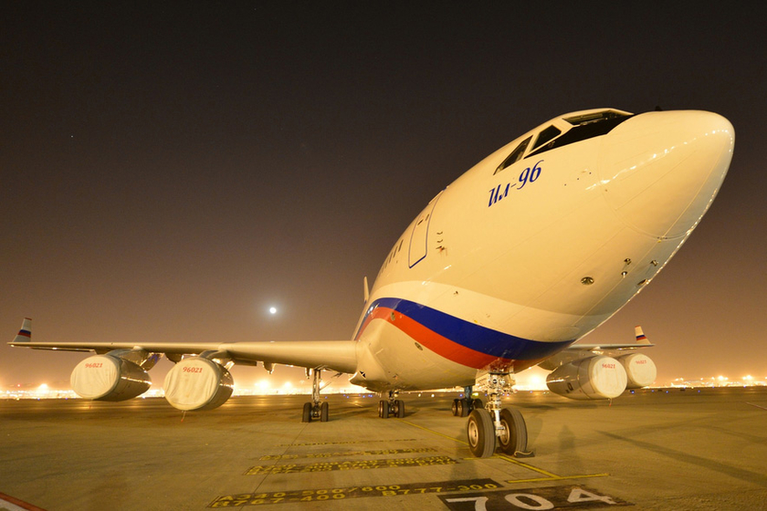 2014年11月10日,亚太经合组织第二十二次领导人非正式会议期间,俄罗斯总统普京乘坐的专机“伊尔-96”停放在北京首都国际机场。资料显示,这架飞机机长55米、重230吨,可连续飞行9500公里。 郭谦/东方IC