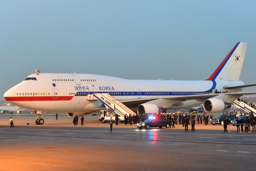 2014年11月10月,亚太经合组织第二十二次领导人非正式会议期间,韩国总统朴槿惠乘坐的专机停放在北京首都国际机场。朴槿惠乘坐的专机为波音747-400,租借自大韩航空。韩国总统府在2010年与大韩航空签订了一份为期五年的租赁合同,租用一架波音747-400型客机作为总统专机,供出国访问使用。合同签订前,韩国总统出访时乘坐大韩航空或韩亚航空公司的包机。 郭谦/东方IC