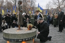 - 2014年11月22日,乌克兰首都基辅,民众举行仪式纪念“乌克兰大饥荒”81周年。乌克兰总统波罗申科半跪,向“乌克兰大饥荒”遇难者纪念碑献花。“乌克兰大饥荒”发生于1932年至1933年间,约有240万至750万乌克兰人死于这场饥荒。 Efrem Lukatsky/东方IC