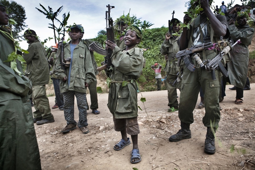 10年之后的2013年,同样在刚果的Kanyabyonga,动乱仍在继续。图为同样年轻的一名“娃娃兵”抱着他的AK-47。 Marcus Bleasdale