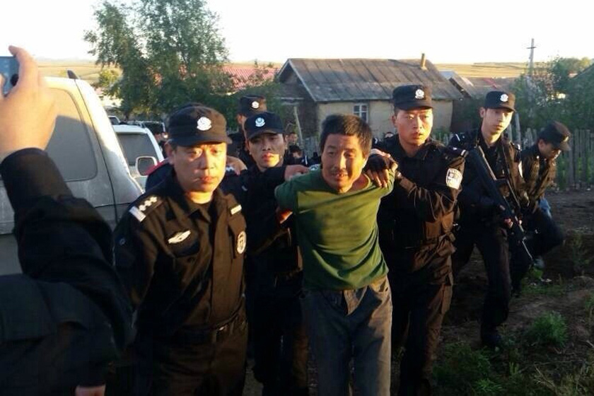 2014年9月11日下午5时许,黑龙江哈尔滨延寿县看守所“9.2”脱逃案最后一名犯罪嫌疑人高玉伦,在延寿县青川乡被公安机关抓获。9月2日4时40分许,在哈尔滨市延寿县公安局看守所,3名在押犯人高玉伦、李海伟和王大民将一名当班狱警杀死后逃走。随后不久,李海伟和王大民被抓获。 图片来源@公安部刑侦局