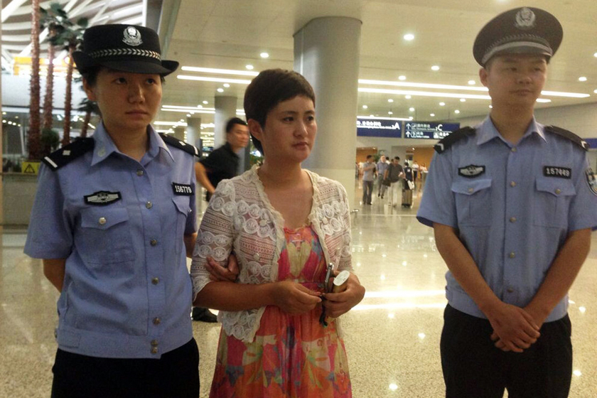 【潜逃美女老板押解回国案】2014年7月3日,上海浦东机场,涉嫌卷款上亿,潜逃5个月的浙江金华美女老板俞优静被押解回国。一下飞机,她就表达了悔意。她于当晚被押解回永康。CFP