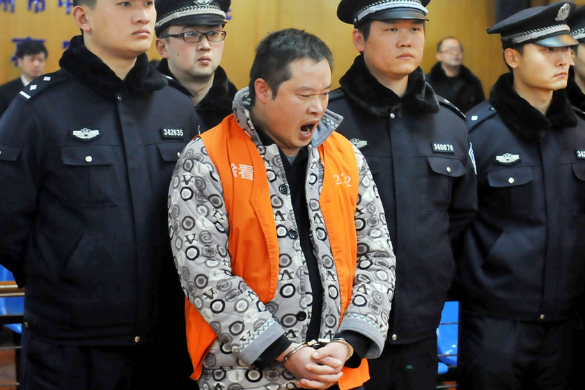 【滁州毒品案】2014年12月4日,备受关注的滁州建市以来最大毒品案在滁州市中级人民法院一审宣判,4名毒贩获刑,其中2名主犯被判处死刑。图为一名毒犯在法庭宣判现场打哈欠。王家国/CFP