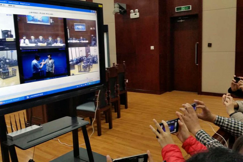 【“复旦投毒案”二审】2014年12月8日,上海,备受关注的复旦投毒案在上海高院公开开庭二审。法庭播放犯罪现场重现的录像,林森浩向警方展示投毒过程。2013年3月31日,上海复旦大学2010级硕士研究生林森浩将其做实验后剩余并存放在实验室内的剧毒化合物带至寝室,注入饮水机槽。导致同寝室的黄洋喝水后身体不适,最终死亡。2014年2月18日,上海市第二中级人民法院一审宣判,被告人林森浩犯故意杀人罪被判死刑,剥夺政治权利终身。周凯/CFP
