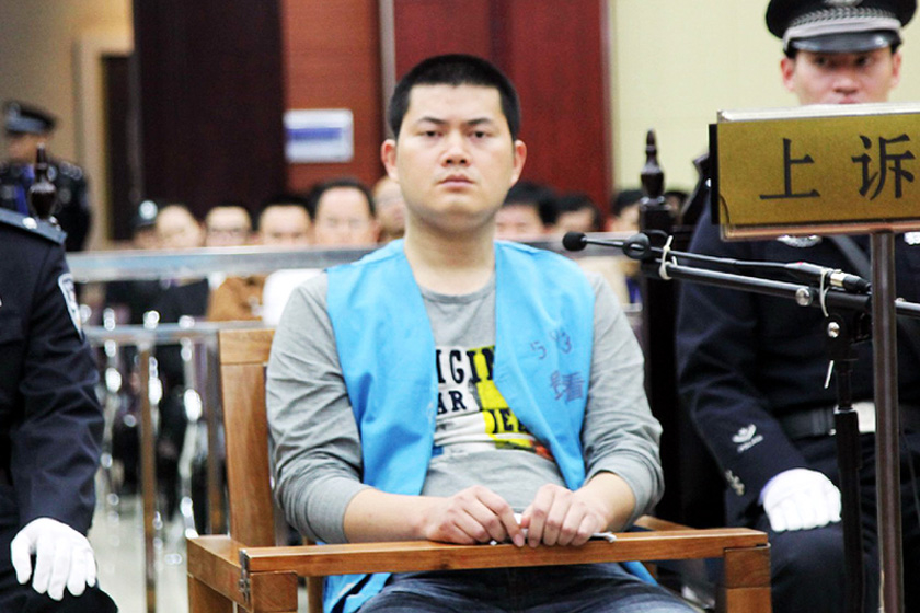 【民警醉酒枪杀无辜孕妇案】2014年4月1日,备受关注的广西民警“醉酒枪杀无辜孕妇案”由广西壮族自治区高级人民法院二审公开审理,裁定驳回上诉,维持一审死刑判决。图为二审法庭上的被告人胡平。 2013年10月28日,广西平南县公安局刑事侦查大队民警胡平,醉酒后在镇上一家“老牌螺蛳粉”店内,因米粉店不卖奶茶,而持枪朝店主蔡世勇、吴英夫妇连开三枪,致身怀六甲的吴英当场死亡、蔡世勇轻伤。2014年2月17日,广西省贵港市中级人民法院一审判处被告人胡平死刑,剥夺政治权利终身,并赔偿附带民事诉讼原告人物质损失73324.1元。东方IC