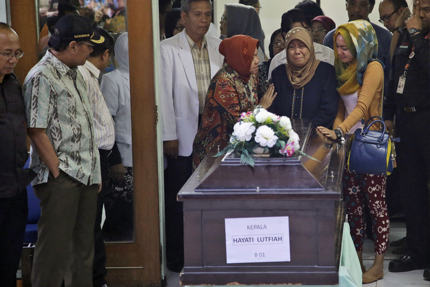 - 当地时间2015年1月1日,印度尼西亚泗水,印尼将亚航QZ8501空难的遇难者、49岁的女乘务员哈雅蒂·露特菲亚·哈米德的遗体移交给家属,并为哈米德举行葬礼。 Dita Alangkara/东方IC